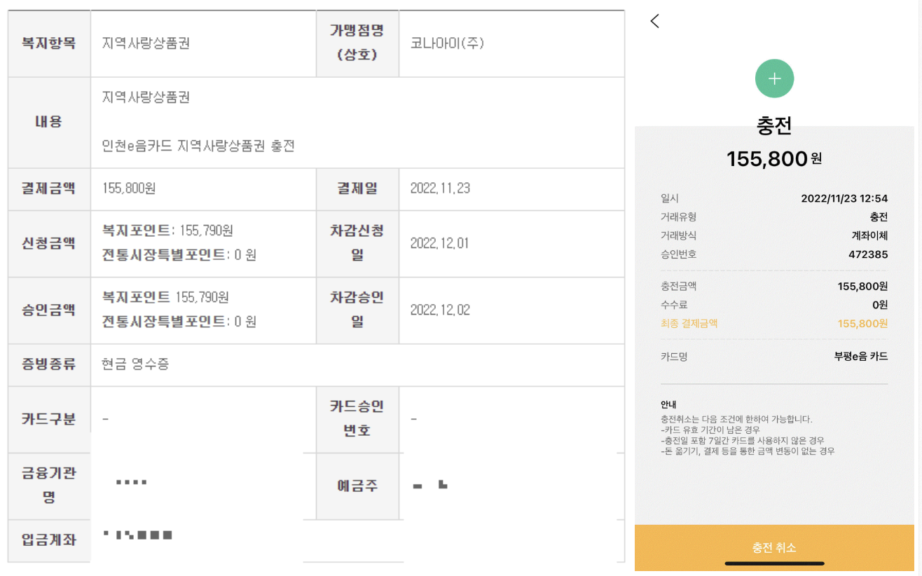 ์ด์์นด๋ ์ฑ์์ ์ถฉ์ ํ์ ๋ด์ญ์ ์บก์ณํ์ฌ ์จ๋ผ์ธ๋ณต์ง๊ด์์ ์ฐจ๊ฐ์ ์ฒญ์ ํ์ค ๋ ์ฆ๋น์ผ๋ก ์ฒจ๋ถํ์๋ฉด ๋ฉ๋๋ค. ์๋ช ํ์ค ๋์๋ ์๋์ ๊ฐ์ด ์ ๋ณด๋ฅผ ๋ฃ์ด์ฃผ์๋ฉด ๋ฉ๋๋ค.